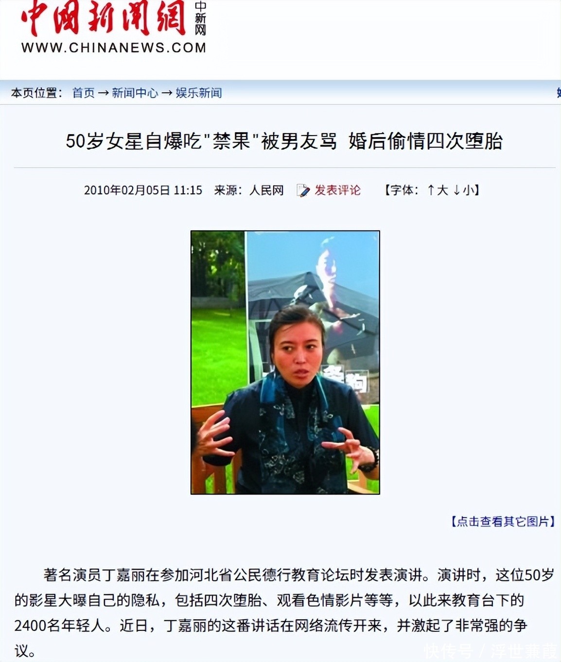 信息来源:原文登载于中国新闻网2010 年2月5日关于“50岁女星自爆吃"禁果"被男友骂 婚后偷情四次堕胎”的报道