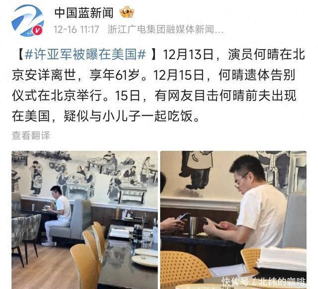 只不过人们也都比较好奇,为何在何晴追悼会上只看到了儿子许何的身影,却没有看到许亚军。 有人晒出许亚军陪伴小儿子在外就餐,要说一碗水本身就是很难端平的。在父母眼中,其实许何都还是个孩子而已,却要去面对亲妈的离世。